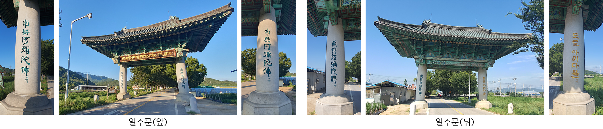 앞쪽 기둥 양면에는 ‘나무아미타불’ 이 새겨져 있고, 뒷면 기둥 우측에는 ‘도로 아미타불’ 이 새겨져 있다.
